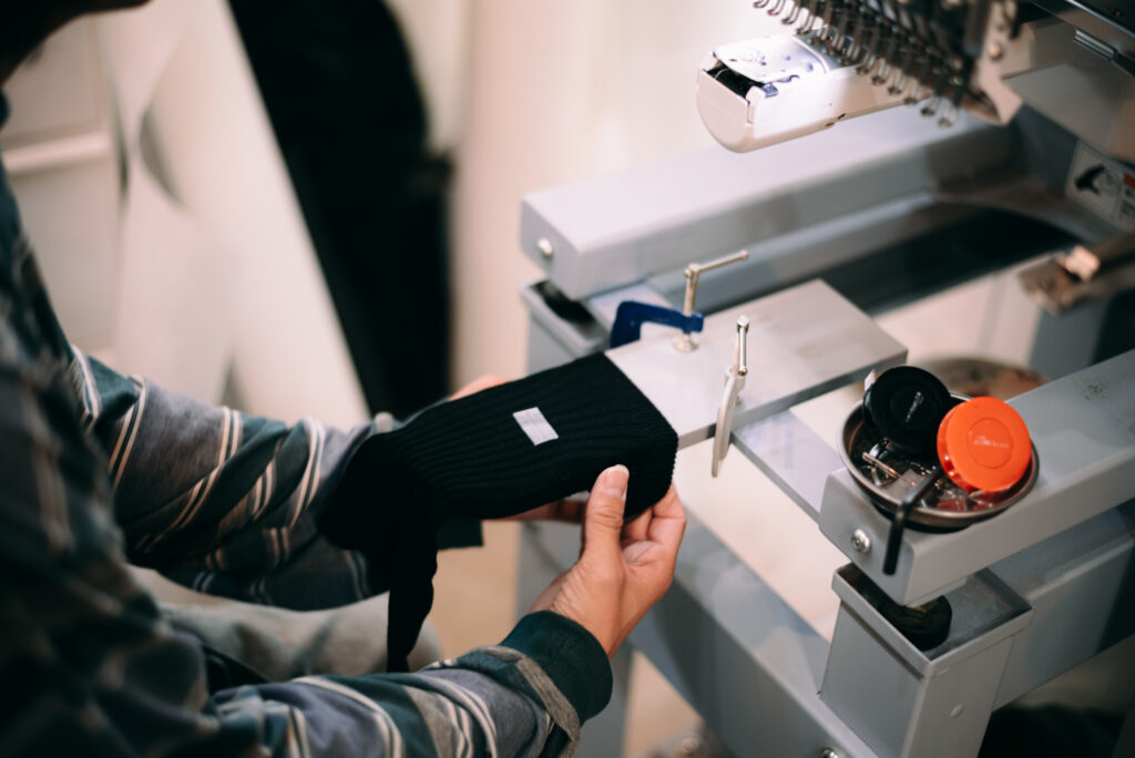 靴下を刺繍する際には専用の「靴下枠」というものを使うことで、伸縮性のある靴下にも刺繍がしやすく、またうっかり反対側の面も縫い合わせてしまい『あれ、履けない。。』といった事態を防ぐことができます。