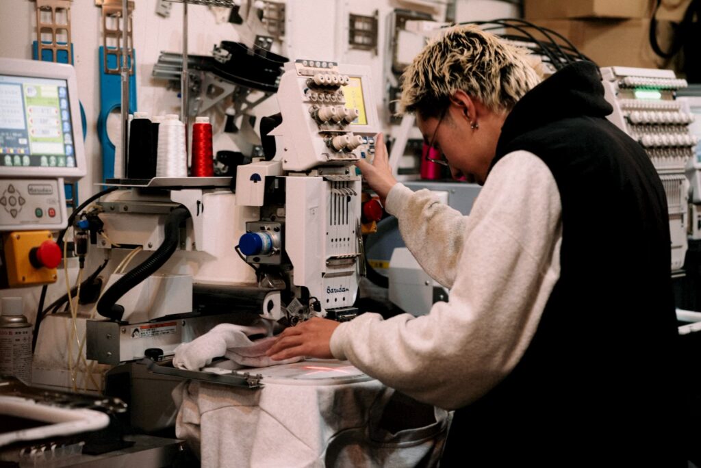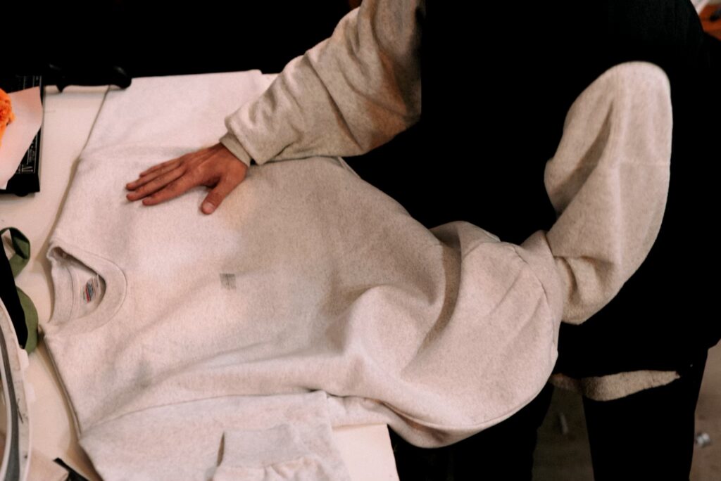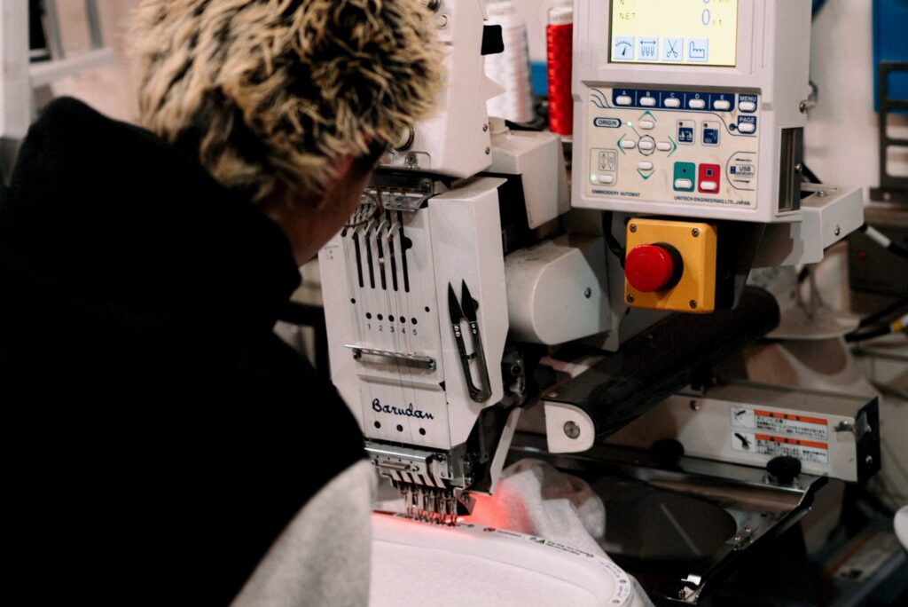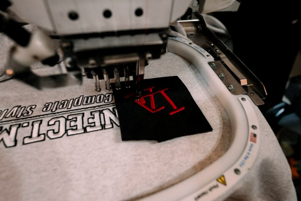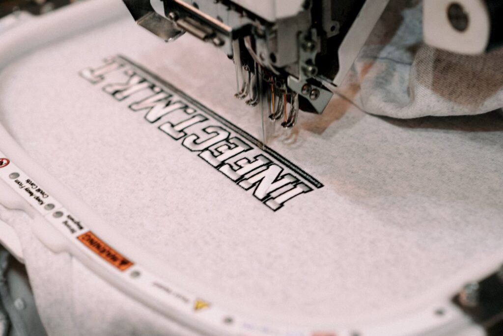 ボリュームのある刺繍をご希望とのことでしたので、刺繍の重厚感を引き立たせる為ヘビーウェイトのトレーナーを採用し、刺繍と服とのバランスを取りました。
